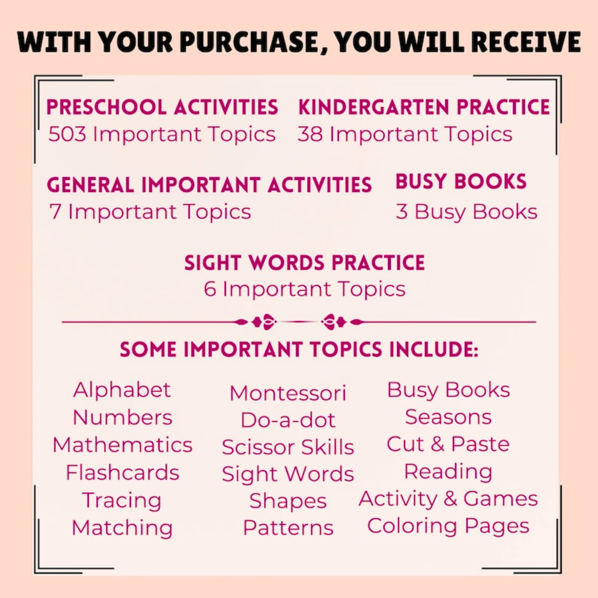 Embark on an exciting educational journey with our comprehensive 5,000+ page bundle, meticulously designed to cover the most important topics essential for your child's development. This extensive collection encompasses a wide range of subjects, from early literacy and numeracy to science, social studies, emotional growth, and physical development. Our engaging and diverse materials are perfect for nurturing young minds and fostering a love for lifelong learning.