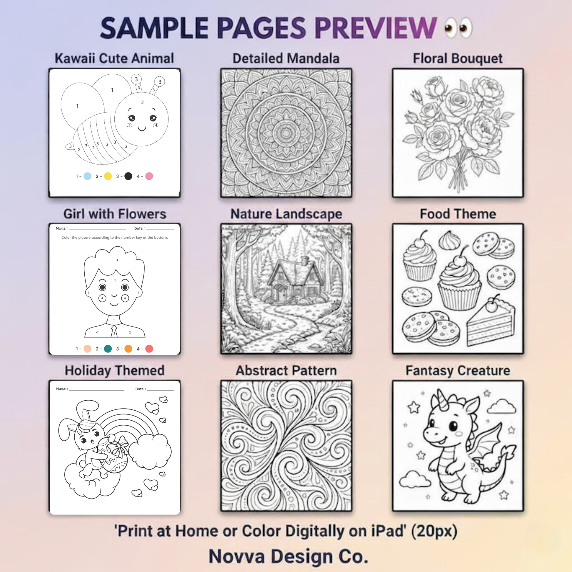 All pages are delivered in HD quality with bold, clean lines β never blurry or photocopy-style β making them perfect for printing or digital coloring on tablets.